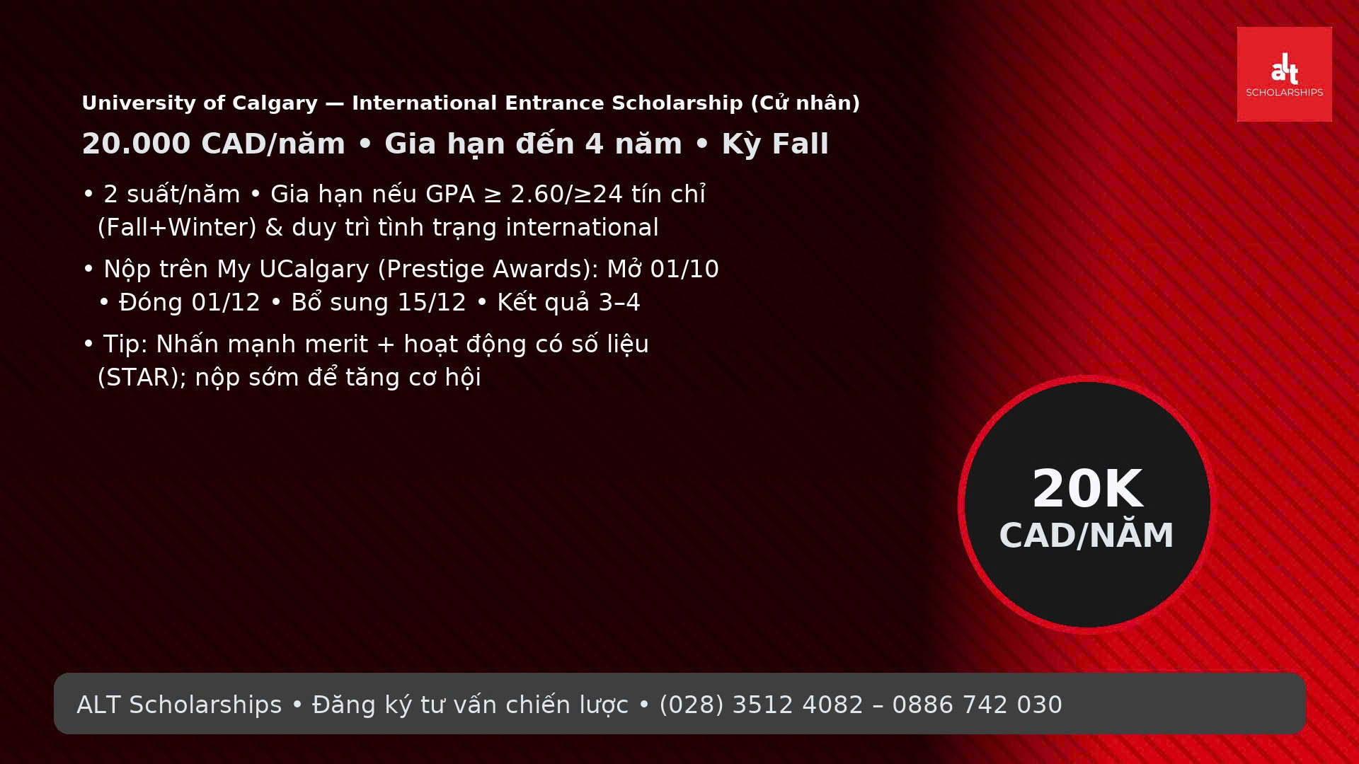 Học bổng Cử nhân 20.000 CAD/năm (gia hạn 4 năm) dành cho sinh viên quốc tế