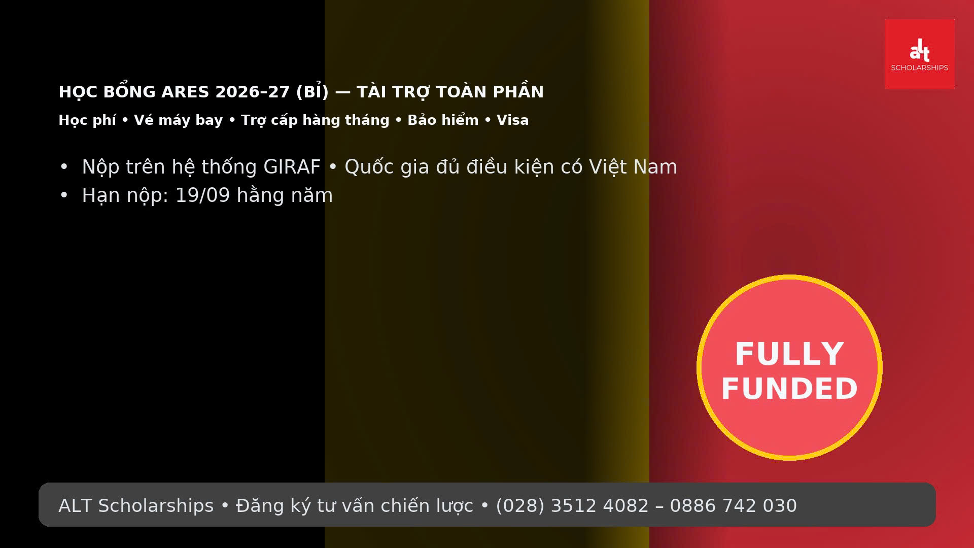 Học bổng Chính phủ Bỉ (ARES) cho Cử nhân nâng cao/Thạc sĩ chuyên sâu & khóa bồi dưỡng 2–6 tháng