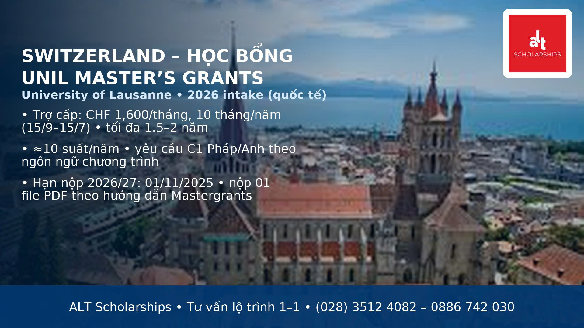 Lưu ý ngân sách: UNIL cảnh báo CHF 1.600/tháng có thể không đủ hoàn toàn chi phí sống ở Lausanne – ứng viên nên chuẩn bị thêm nguồn tài chính.