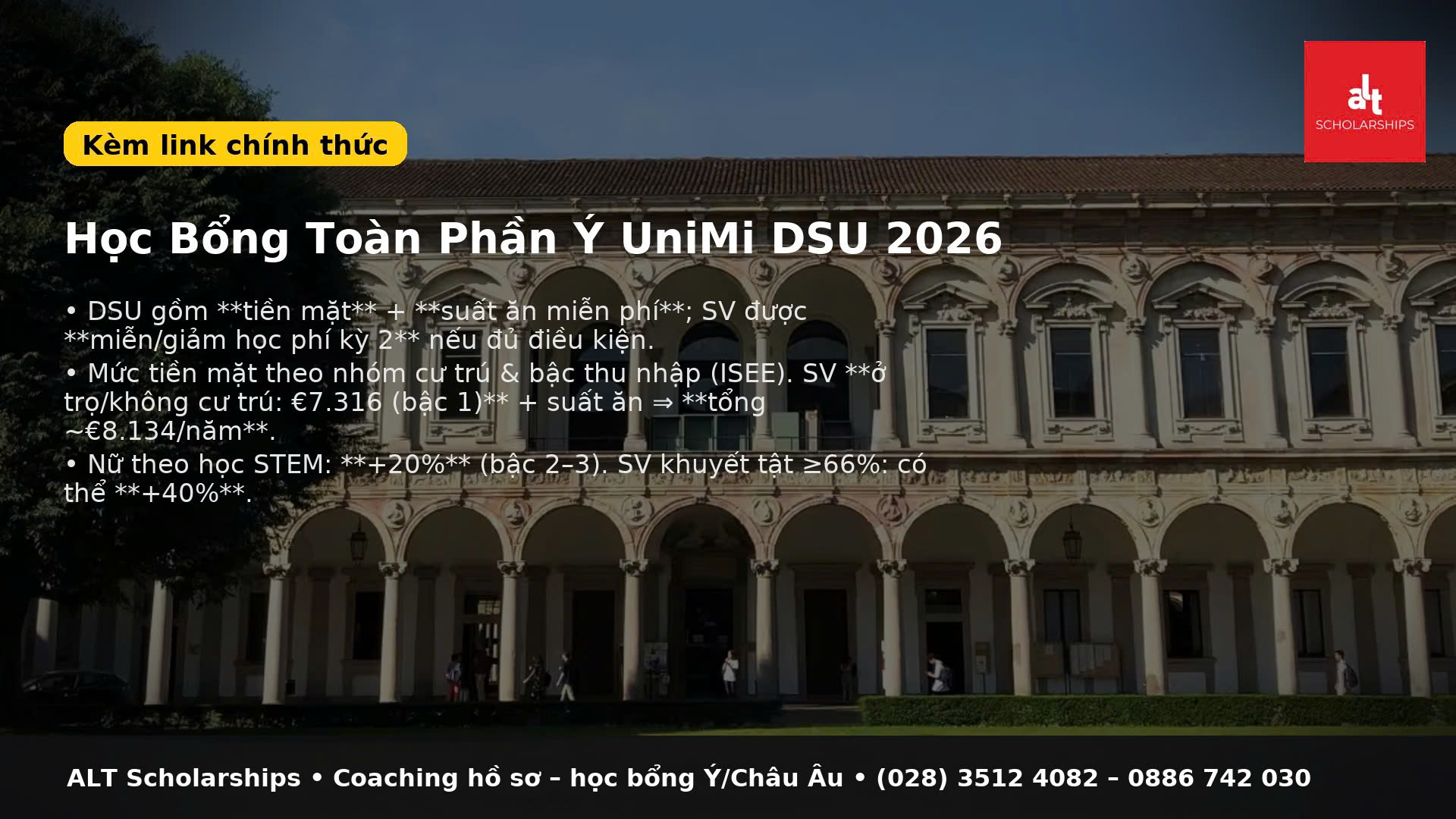 Ghi chú: chi tiết điều kiện, mức tài trợ, hạn nộp có khác nhau giữa các nước – luôn đọc country fact sheet và làm Eligibility Check trước khi mở tài khoản nộp.