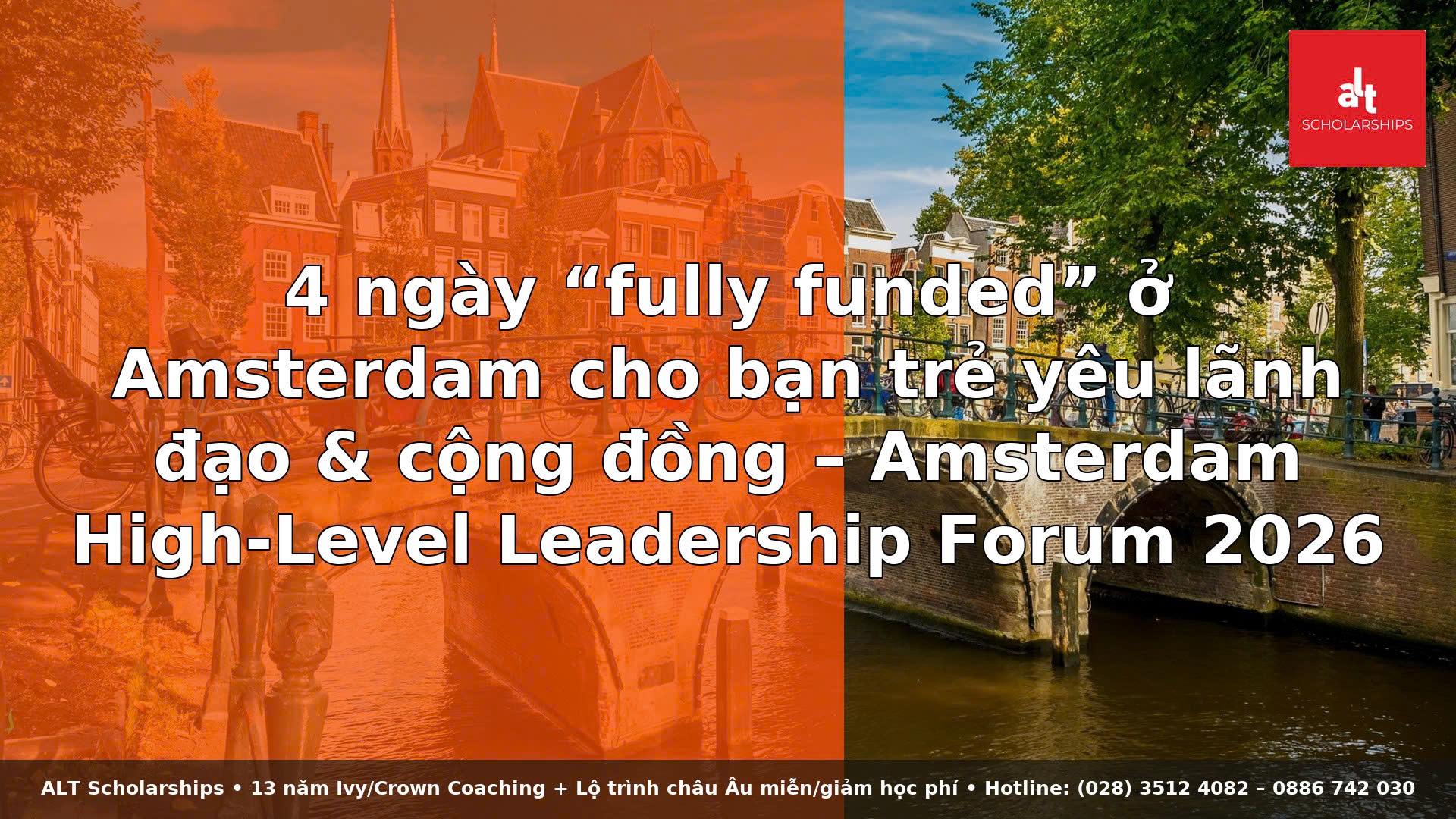 Lưu ý: Đây không phải học bổng chính thức của Đại học Amsterdam, mà là diễn đàn lãnh đạo quốc tế do tổ chức EduTourism for Unity (UK) tổ chức tại thành phố Amsterdam, Hà Lan.