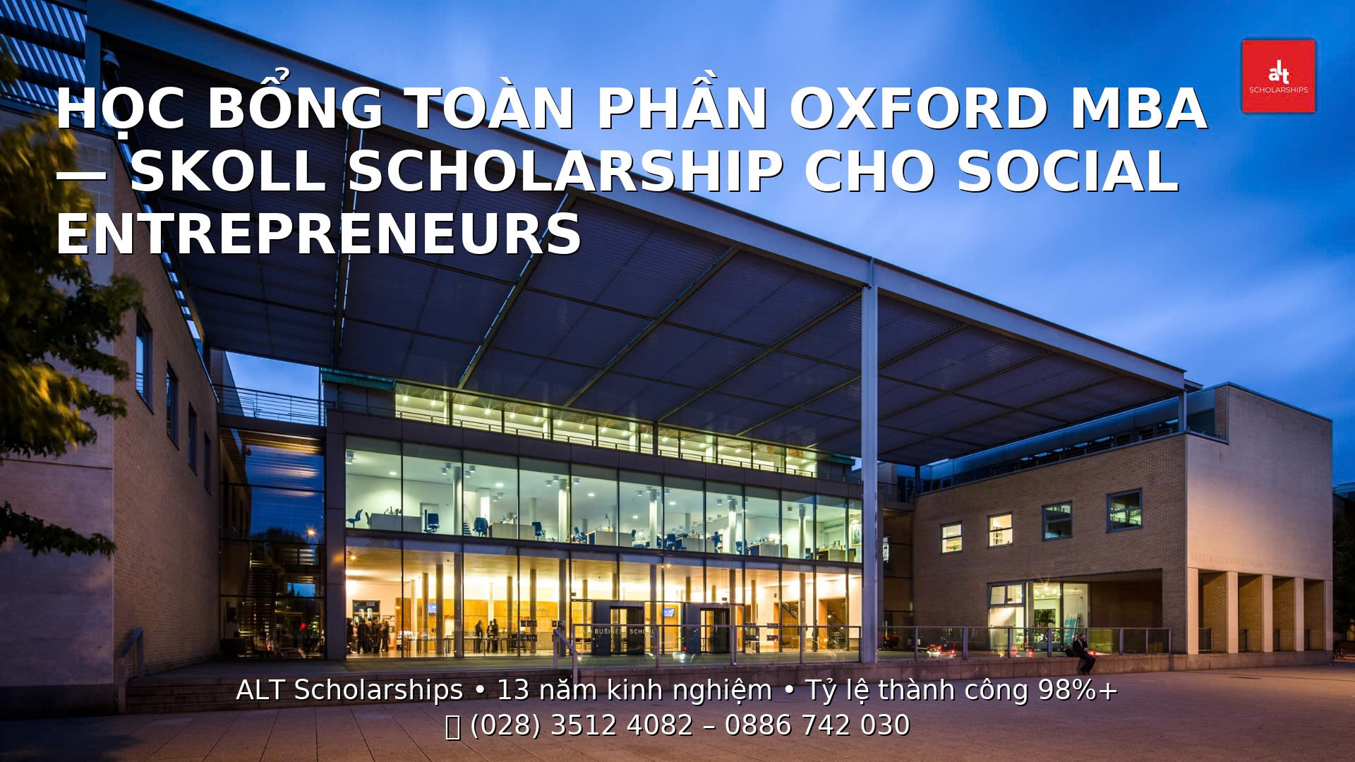 – Skoll Scholarship hỗ trợ toàn bộ học phí Oxford MBA và phụ cấp sinh hoạt cho social entrepreneurs/intrapreneurs có impact đo lường được và có nhu cầu tài chính thật.