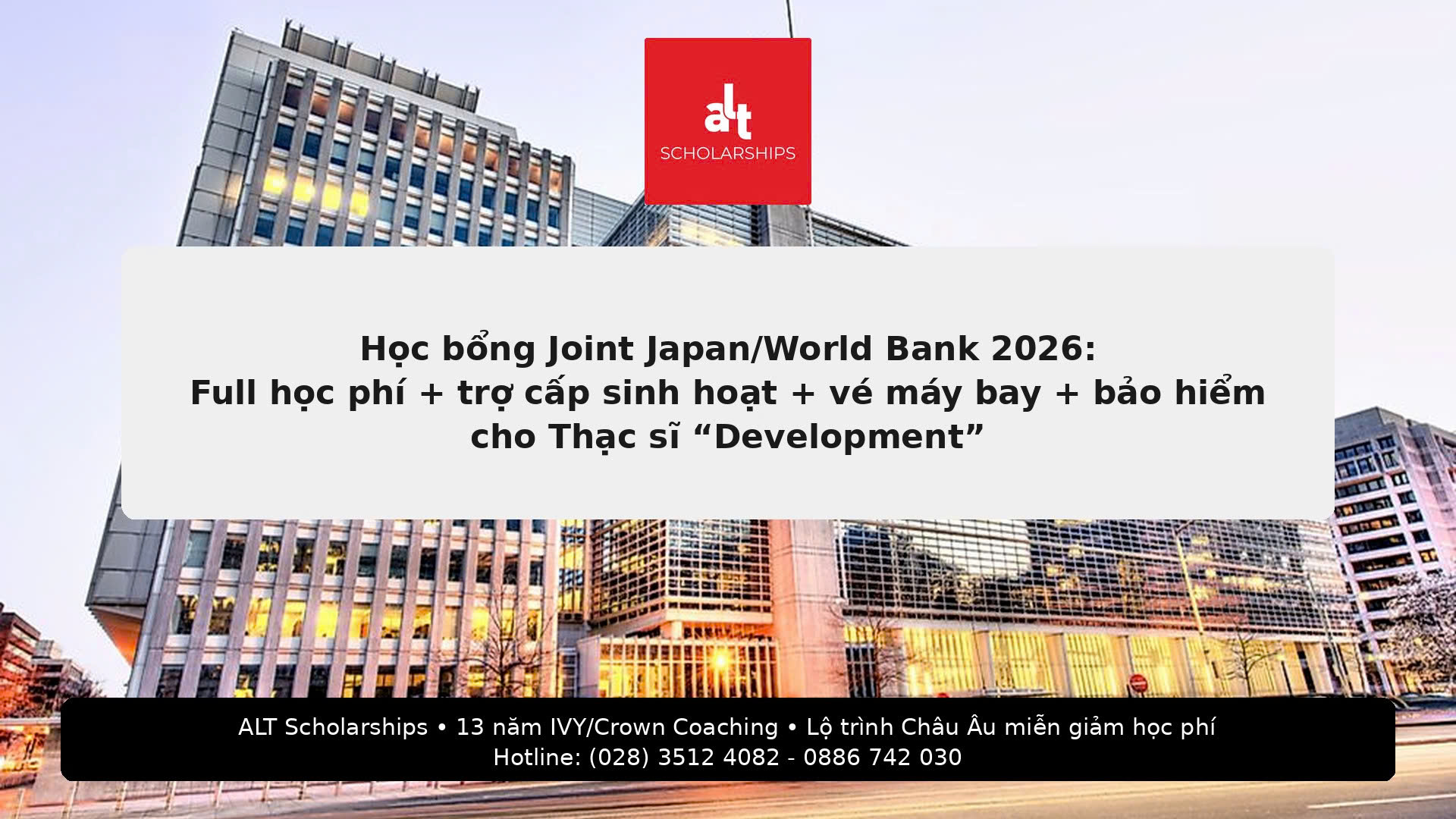 Nếu gia đình/bạn muốn một học bổng “nguồn official cực mạnh – funding thật – tiêu chí rõ – tránh mất tiền oan” cho bậc Thạc sĩ, thì JJ/WBGSP (Joint Japan/World Bank Graduate Scholarship Program) là lựa chọn đáng ưu tiên trong năm 2026 — đặc biệt cho ứng viên Việt Nam theo các ngành “development-related” (quản trị công, kinh tế phát triển, chính sách, hạ tầng, thuế, v.v.).