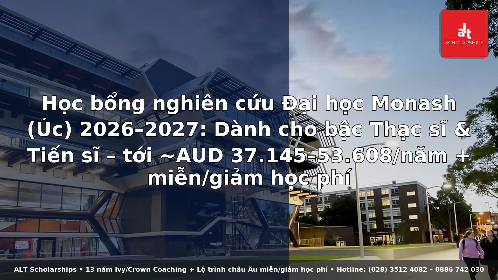 Với các bạn đã hoặc sắp tốt nghiệp Cử nhân, có định hướng nghiên cứu nghiêm túc (Master by Research / PhD), bộ học bổng nghiên cứu tại Monash – đặc biệt là Research Training Program (RTP) Stipend, Monash Graduate Scholarship (MGS) và các học bổng học phí như Monash International Tuition Scholarship (MITS), Monash International Postgraduate Research Scholarship (MIPRS) – chính là “xương sống” tài chính giúp biến kế hoạch học tập – nghiên cứu tại Úc thành lộ trình khả thi.