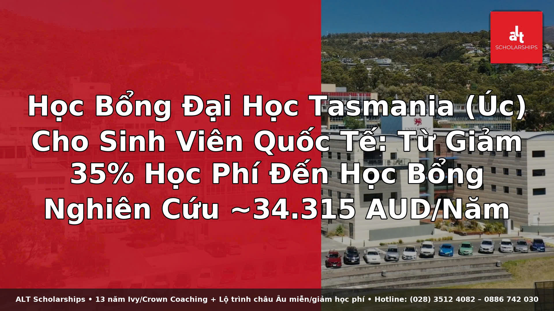 Trong bối cảnh chi phí du học Úc ngày càng tăng, các đại học công lập như University of Tasmania (UTAS) đang thu hút sinh viên quốc tế bằng những gói học bổng vừa có chiều sâu học thuật, vừa hỗ trợ tài chính đáng kể – từ giảm 25–35% học phí cho chương trình coursework cho đến học bổng nghiên cứu với trợ cấp sinh hoạt khoảng 34.315 AUD/năm.