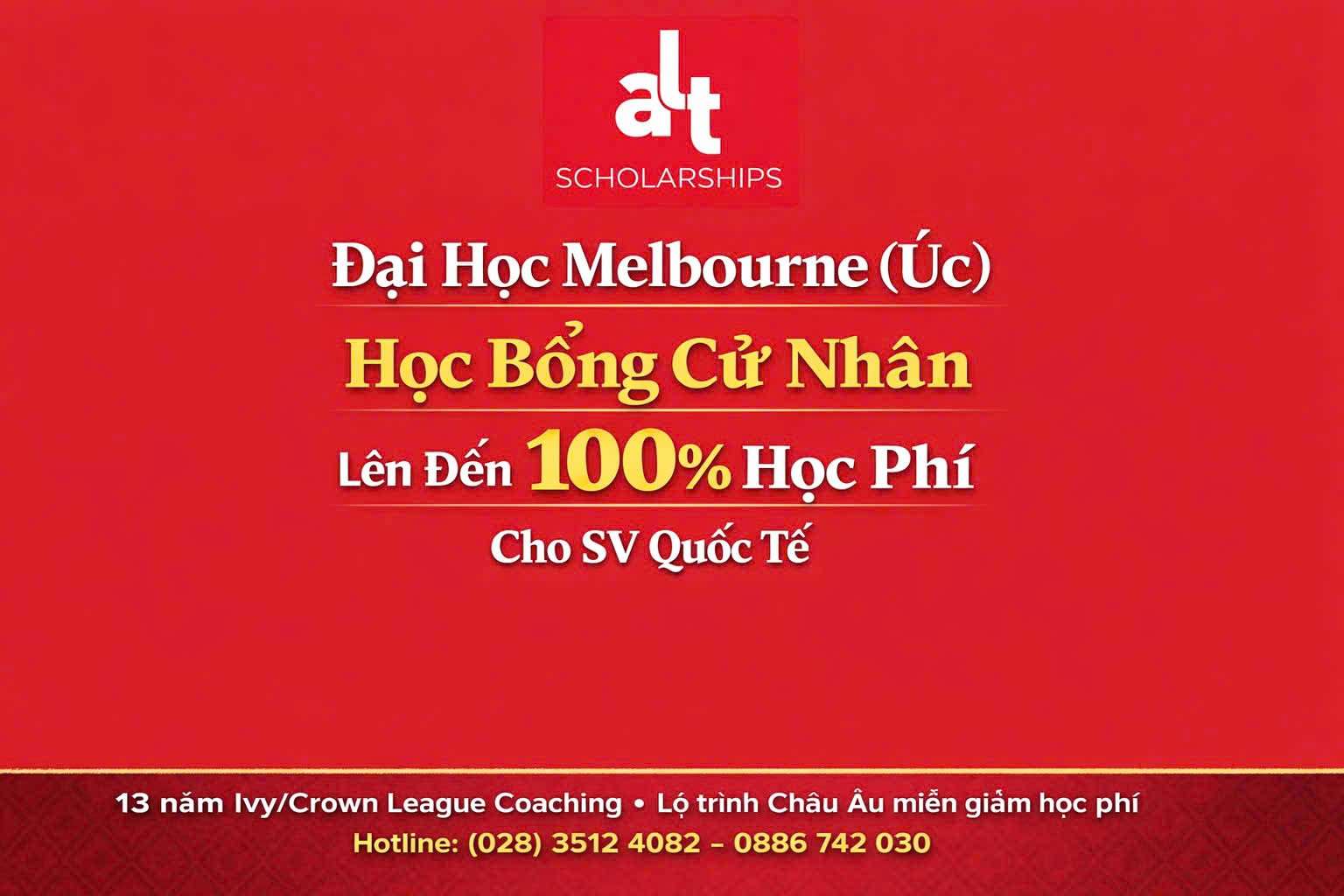 Nếu gia đình/bạn đang cân nhắc du học Úc nhưng “ngại học phí”, University of Melbourne có nhóm hỗ trợ dạng tuition fee remission cho bậc Cử nhân — một số suất được xét tự động khi nộp hồ sơ nhập học. Bài này giúp phụ huynh hiểu đúng: điều kiện, cách xét, mốc hạn quan trọng, phí bắt buộc và một timeline đếm lùi để con lớp 9–12 chuẩn bị “đúng nhịp”.